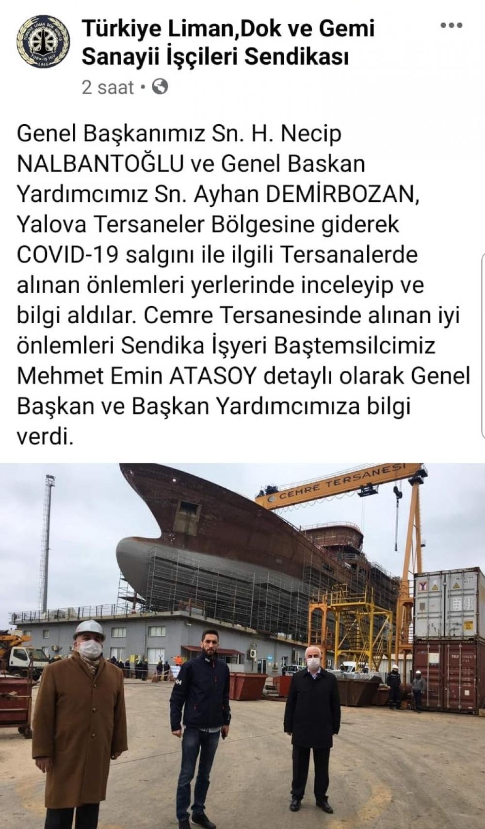 Yalova Valisi Muammer Erol; 24 Mart 2020 Salı günü, tersanelerdeki Covid-19 tedbirlerini yerinde...